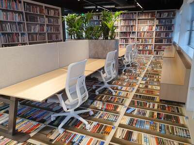 Met als toetje een mooi staaltje printtapijt voor de bibliotheek.